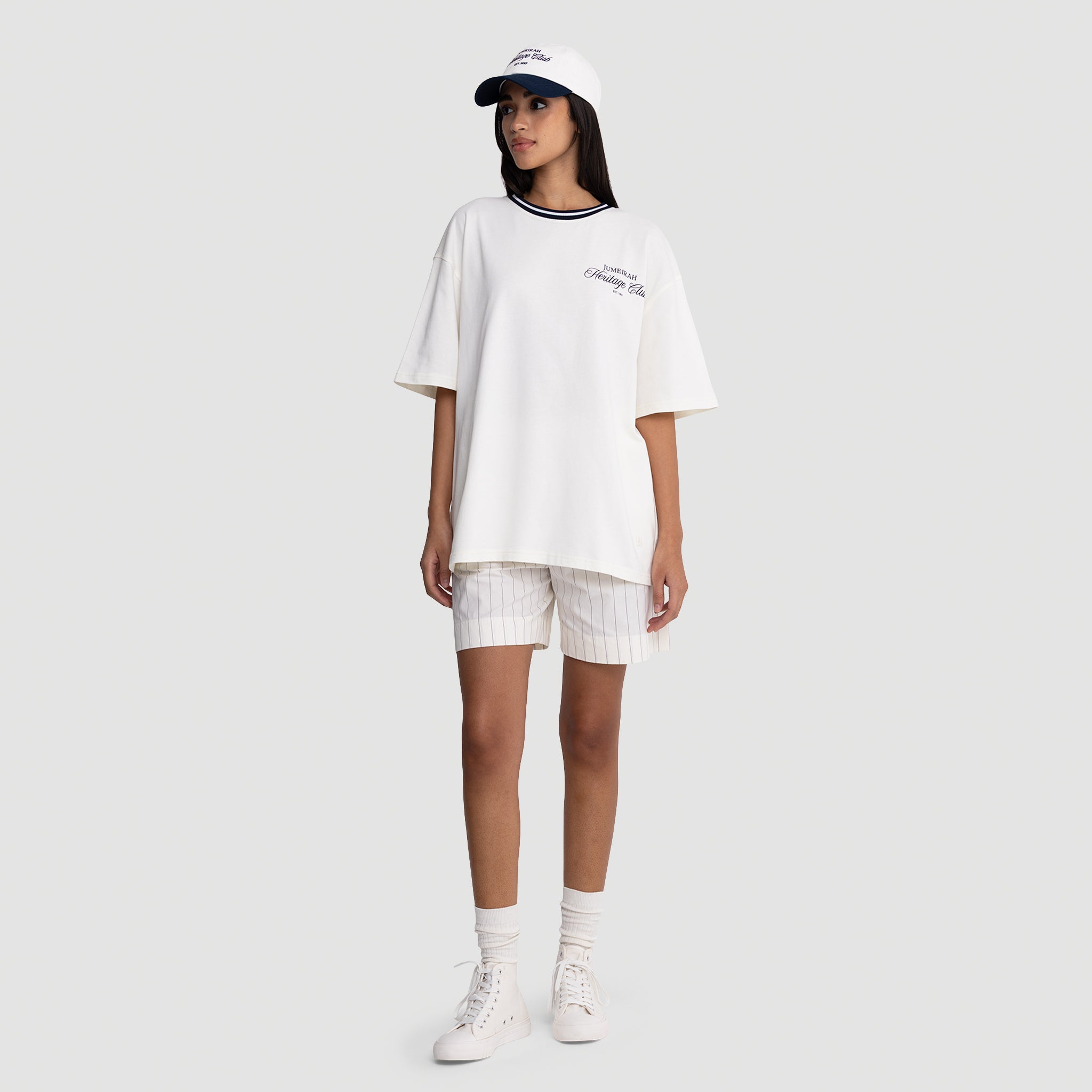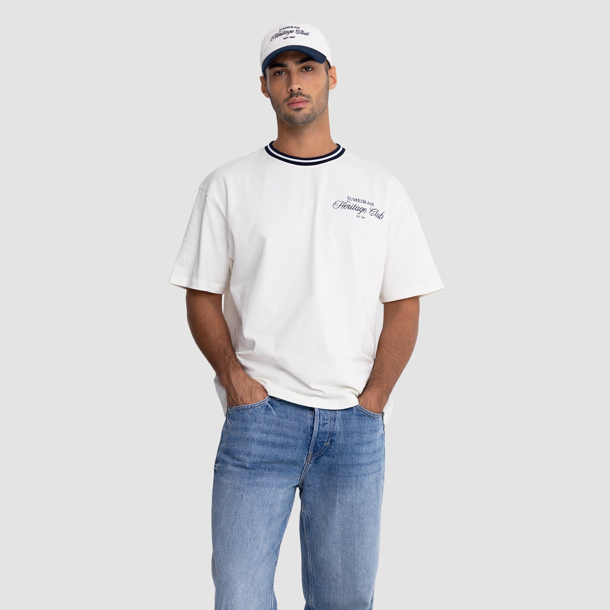 Part of the exclusive Jumeirah Heritage Club capsule, this unisex T-shirt captures the essence of quiet luxury and modern nostalgia. Crafted from refined cotton with a soft, structured finish, it features the Jumeirah Heritage Club logo in dark blue, a subtle nod to nostalgia, belonging and timeless simplicity. The contrast ribbed neckline adds a touch of vintage athleticism, while the minimalist silhouette embodies Bouguessa’s signature approach to effortless refinement. A limited-edition piece that reinterprets Dubai’s coastal heritage through a contemporary lens.