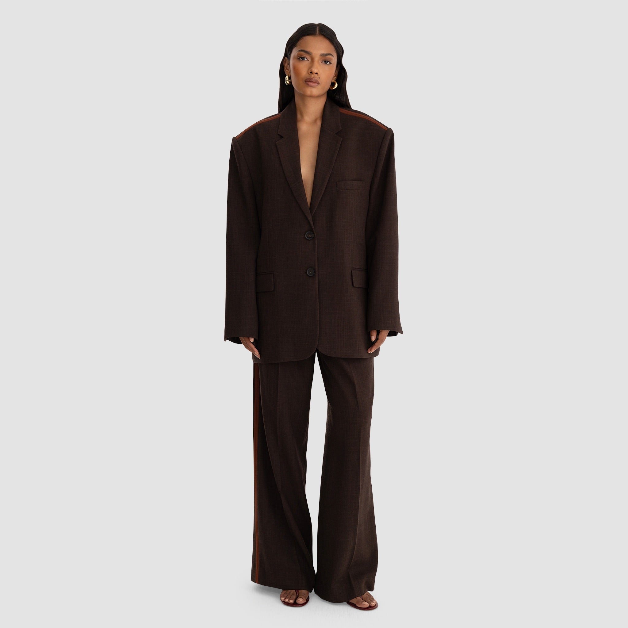 Concealed pockets at the front and welt pockets at the back maintain a streamlined profile. A fine stitch runs along the side seam, a restrained signature that defines the trousers without disrupting their simplicity. Designed to anchor a considered wardrobe, they pair naturally with the Alison Blazer or stand alone with equal authority.
