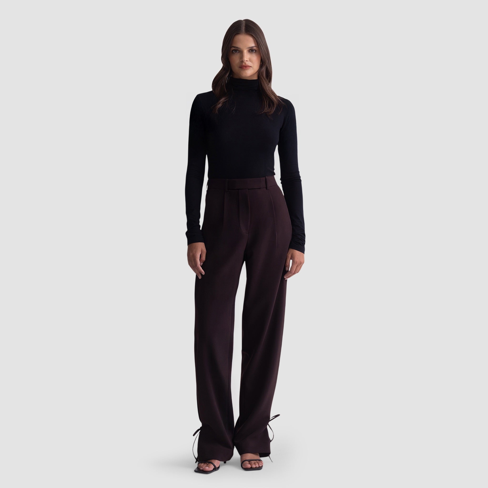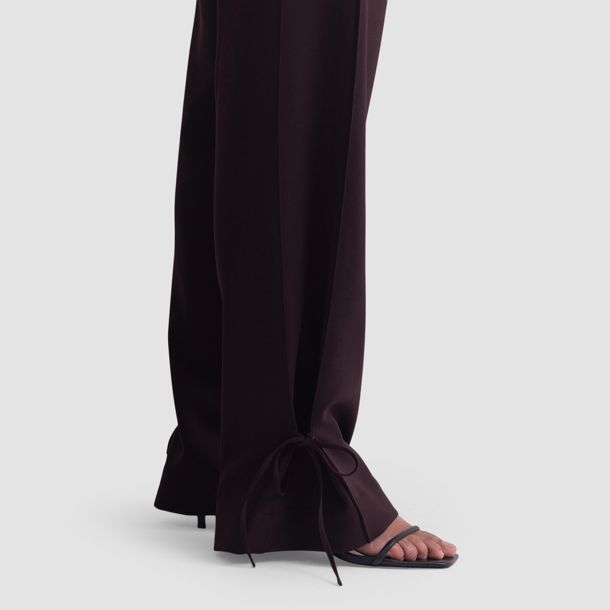 The Elise Trousers are a study in refined ease — where structure meets fluidity. Tailored from a luxurious triacetate blend, they feature a high-rise waist and a straight leg that drapes elegantly to the floor. The subtle bow detail at the hem adds a feminine twist to their clean, architectural lines, allowing the silhouette to shift from sharp to soft with effortless grace. Designed to move seamlessly from day to evening, they embody understated sophistication at its finest.