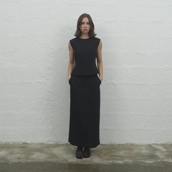 The Rabea Top is a refined expression of structured minimalism. Designed with a sculptural, sleeveless silhouette, it features clean lines that frame the shoulders while softly contouring the waist. Its streamlined construction creates a polished, architectural presence; balancing sharp tailoring with feminine fluidity. Crafted in a vivid red hue, the Rabea Top is a versatile statement piece that transitions effortlessly from day to evening, whether styled for modern power dressing or elevated occasionwear.