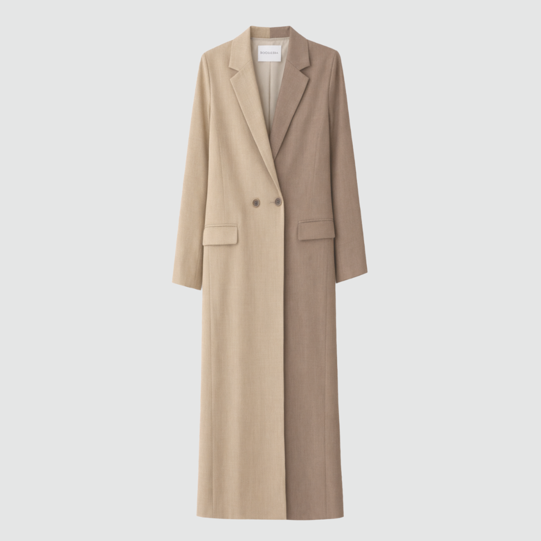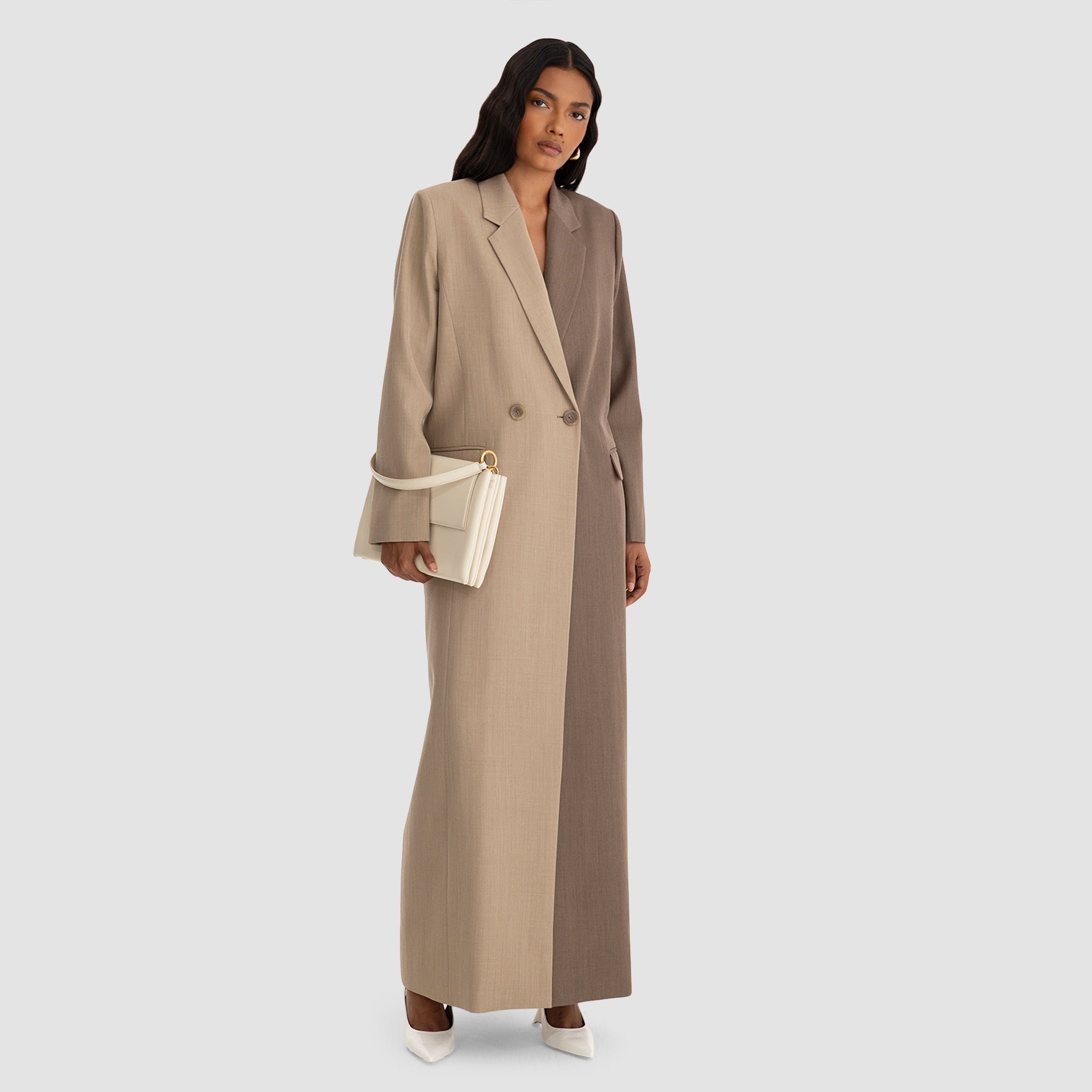 Zelda Long Blazer - Two-Tone Beige & Taupe